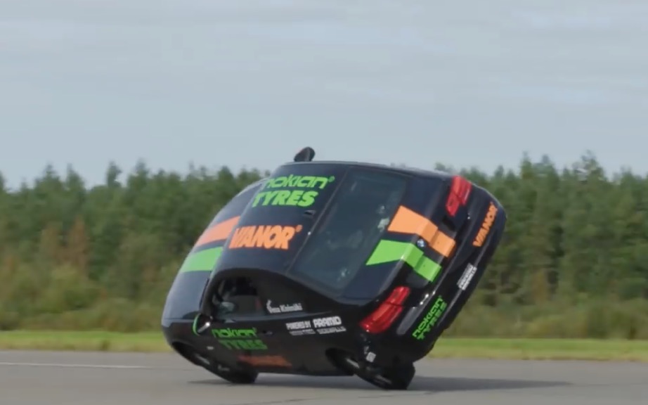 Description : Au volant de sa BMW, le cascadeur Vesa Kivimaki monte à 186km/h sur deux roues.