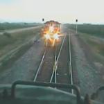 Description : La scène se passe à Burlington aux États-Unis, deux caméras de surveillance filment une puissante collision entre deux trains se dirigeant l'un en face de l'autre sur le même rail ! Aux dernières nouvelles il n'y a eu aucun morts mais ça se serait surement passé autrement si le conducteur n'avait pas sauté avant le choc...