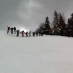Description : Sur une piste de ski 30 personnes se tiennent la main pour réaliser ensemble un backflip. Ça doit pas être évident quand même...