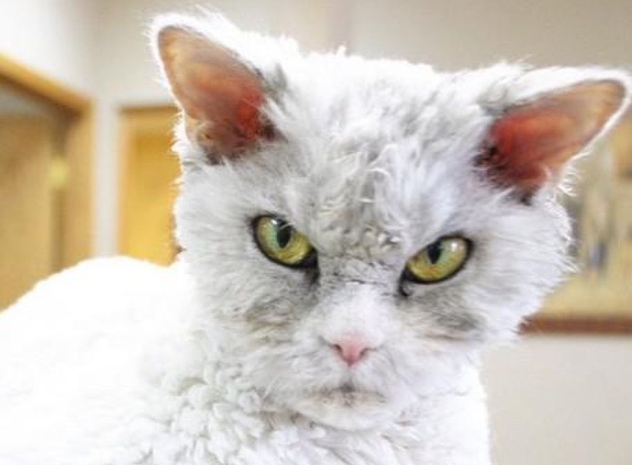 Après Tardar Sauce plus connu sous le nom de Grumpy Cat voici Albert, un joli selkirk rex gris et blanc qui a la particularité d'être TOUT le temps en colère. Enfin la nature lui a pas laissé le choix et tant mieux pour nous.