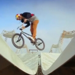 Description : En Ukraine (et pour Redbull), le biker Vasya Lukyanenko s'est offert une séance de tricks en BMX sur les antennes paraboliques du National Spacecraft Control de Yevpatoria.