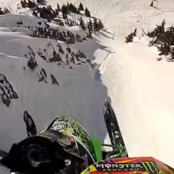 Description : La vidéo de l'énorme saut réalisé depuis une falaise par Brett Turcotte et sa motoneige. Ça doit pas être facile de retomber sans se faire mal avec une aussi grosse paire...