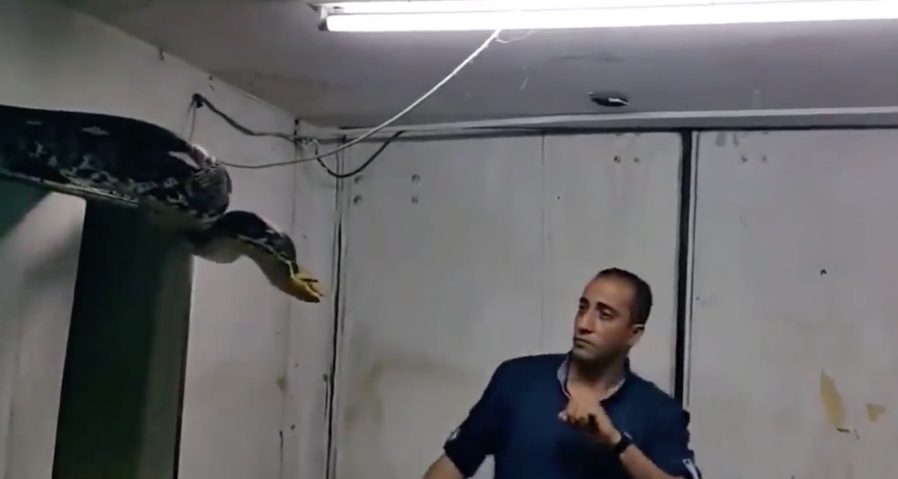 C'est un palestinien ... c'est expert en la matière! Il connaît presque tout sur les serpents reptiles et compagnie ( en palestine/Israël)! C'est son anaconda il s'appelle : loco le fou. Il s'est levé le matin et a constaté que loco n'es plus dans son enclos...