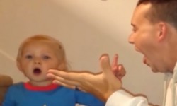 Description : La réaction super cute d'un gamin devant le "tour de magie" de son père.