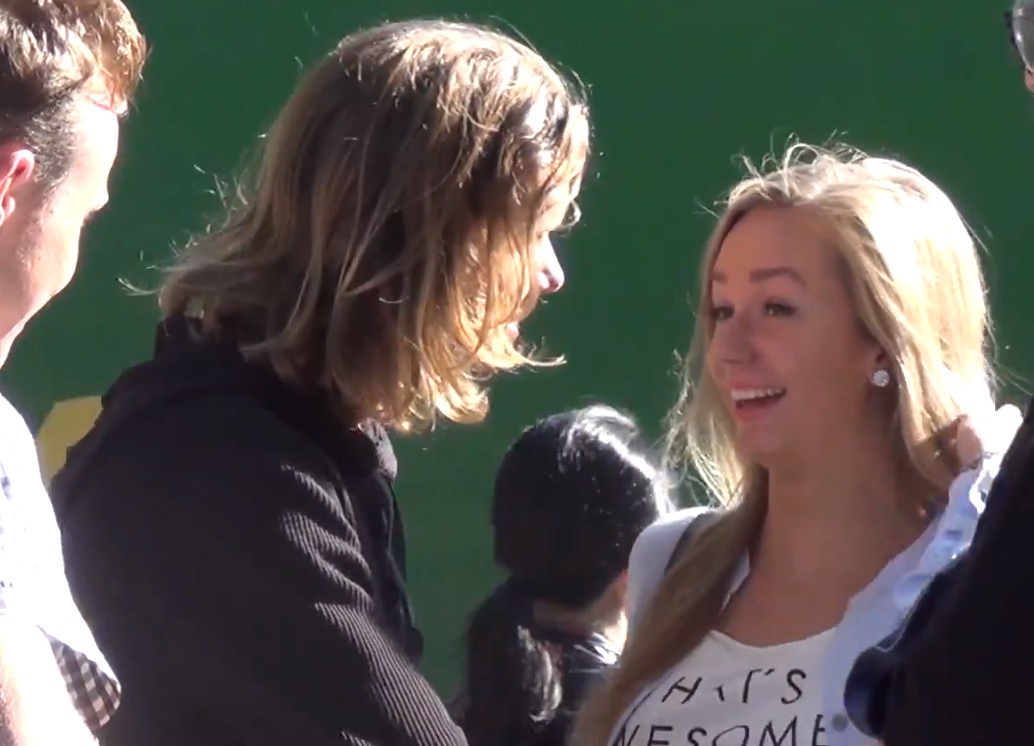 Description : Dans la rue, des mecs montrent des photos de célébrités à des inconnues en leur demandant si elles accepteraient de les embrasser, la dernière photo est celle de l'un d'eux.