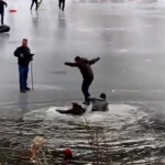 Description : Une bonne petite vidéo filmée au bord d'un lac gelé en Amérique du nord, qui nous montre combien de Régis il faut pour sauver un homme de la noyade. Darwin doit bien se marrer...