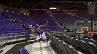 Description : La jeune recrue des Harlem Globetrotters, Corey "Thunder" Law, vient d'inscrire son nom dans le Guiness des records avec ce panier marqué à une distance de 109 pieds (environ 32 mètres).