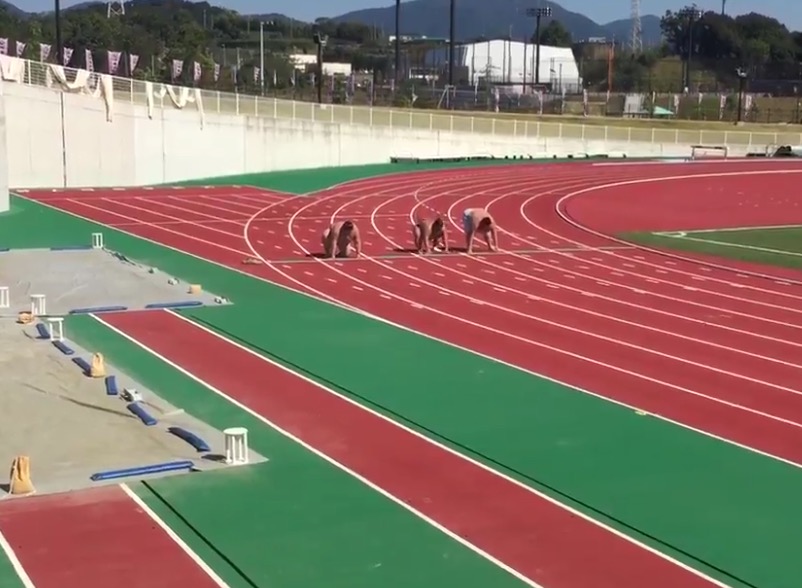 Description : Sur une piste d'athlétisme, trois sumos se livrent à un sprint sur une distance aussi courte que leur...