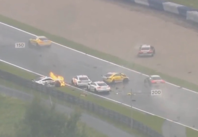 Description : Les images d'un impressionnant crash impliquant 4 bolides lors de l'Audi TT Cup 2015.