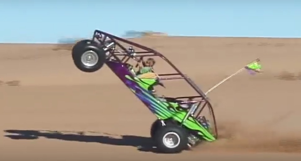 Dans le désert, un gamin s'éclate avec un buggy
