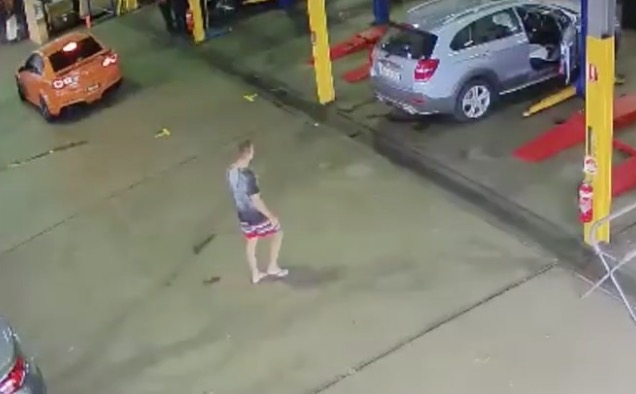 Description : Dans un garage en Australie un homme entre tranquillement, inspecte les voitures et se met au volant d'une Holden SSV Redline avant de repartir "calmement" avec.