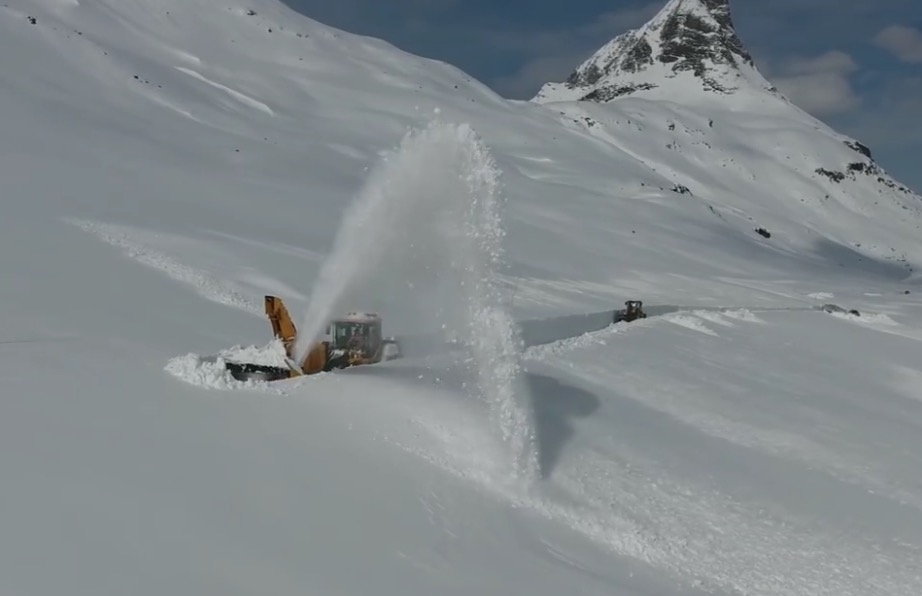 Description : L'hiver en Norvège quand il faut déneiger une route la patience est de mise...