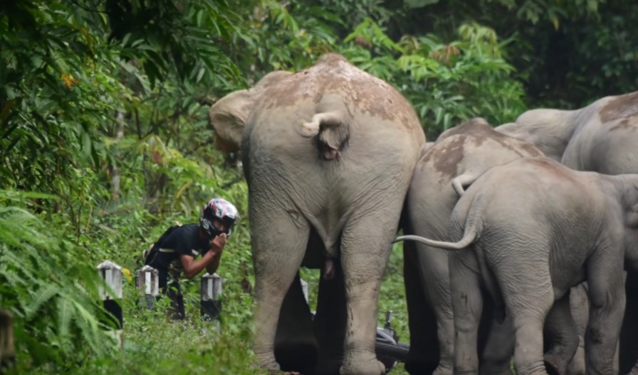 Description : Dans le parc national de Khao Yai en Thailande, un motard imprudent va passer à coté d'un troupeau d'éléphants, forcément ça va pas très bien se passer pour lui...