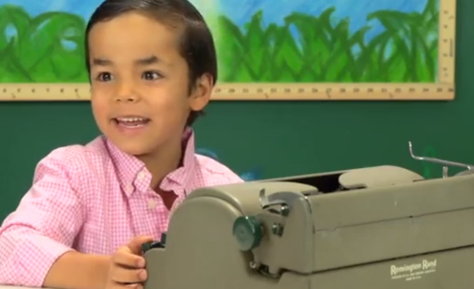 Description : La réaction de plusieurs enfants devant ces vieilles machines à écrire / machine mécanographique. C'est intéressant de voir qu'ils sont plus intrigués par ce gros machin métallique que par la Game Boy.