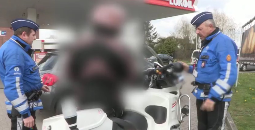 Description : En Belgique, lors d'un reportage sur les policiers, une patrouille a repéré un motard qui semble rouler avec une moto de police.