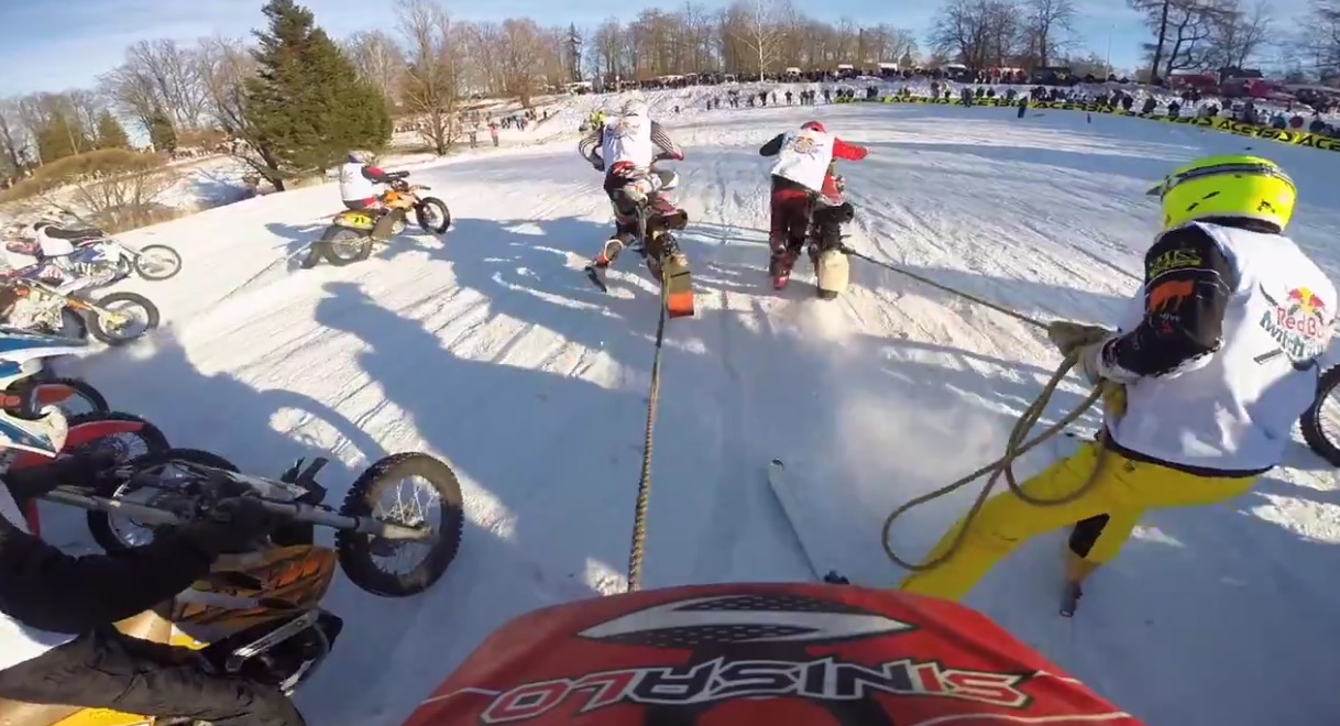 Description : Des images GoPro de la "RedBull Twich’n Ride" une course assez insolite où des skieurs font une course sur la neige tout en se faisant tracter par des motos. Voila qui doit être bien fun.