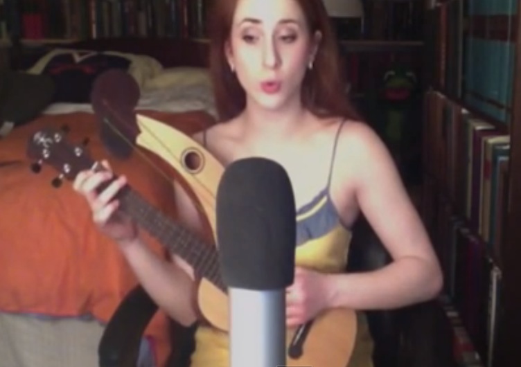 Description : Gracie Terzian joue et chante la chanson Love Rest avec une harpe ukulélé.