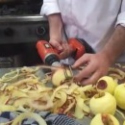 Avec une perceuse et une brosse à toilettes un homme nous montre comment éplucher un kilo de patates sans se fatiguer.