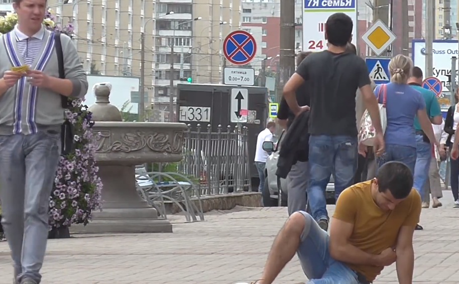 A Kiev en Ukraine, un homme a été filmé en train de se sauver d'une ambulance en pleine route.