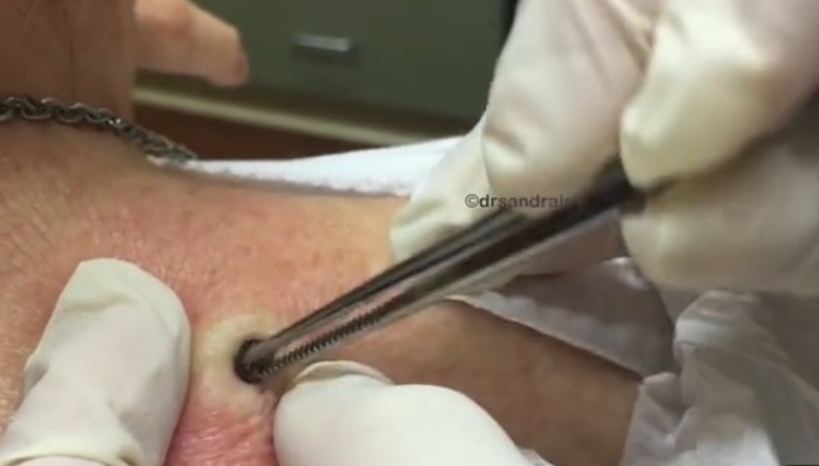 Description : Aux Etats-Unis une grand-mère est chez le dermatologue pour se faire retirer un énorme grain de beauté, inutile de vous raconter la suite c'est juste dégueulasse.