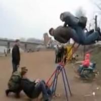 Description : On ne le dira jamais assez les balançoires ne sont pas faites pour les adultes et c'est pas ce Régis russe qui s'est mal accroché au point de faire un joli plongeon qui dira le contraire.