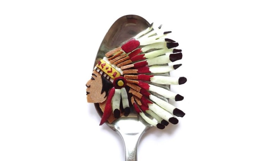 Cette artiste roumaine du nom de Loana Vanc s'est spécialisée dans une pratique aussi amusante qu'originale qui consiste à dessiner sur une cuillère un peu tout et n'importe quoi mais en utilisant la nourriture qui est dans son assiette.