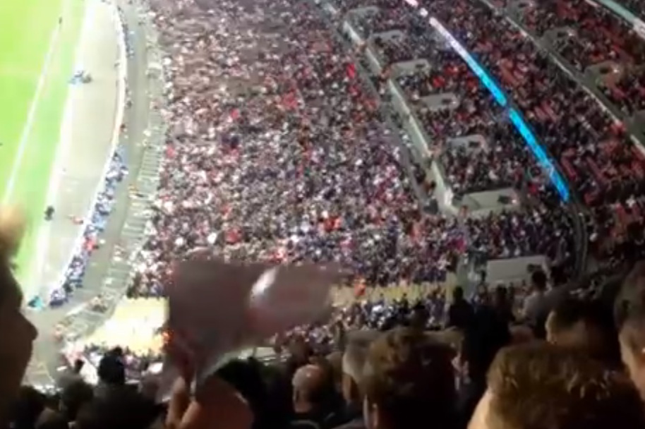 Description : Gros WIN pour ce supporter anglais qui va avoir la bonne surprise de voir son avion en papier lancé depuis le haut des tribunes du match Angleterre Pérou, terminer son vol sur un joueur de l"équipe adverse.