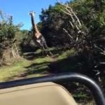 Description : Vous vous rappellez de cette célèbre scène de Jurassic Park où le méchant T. Rex poursuit la jeep du docteur "j'ai dépensé sans compter" ? Et bien deux jeunes mariés viennent de la vivre avec une girafe.