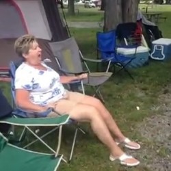 Description : Aujourd'hui la mère de Régis est au camping et pour s'occuper elle va essayer de gober un marshmallow propulsé par un lance-patate.