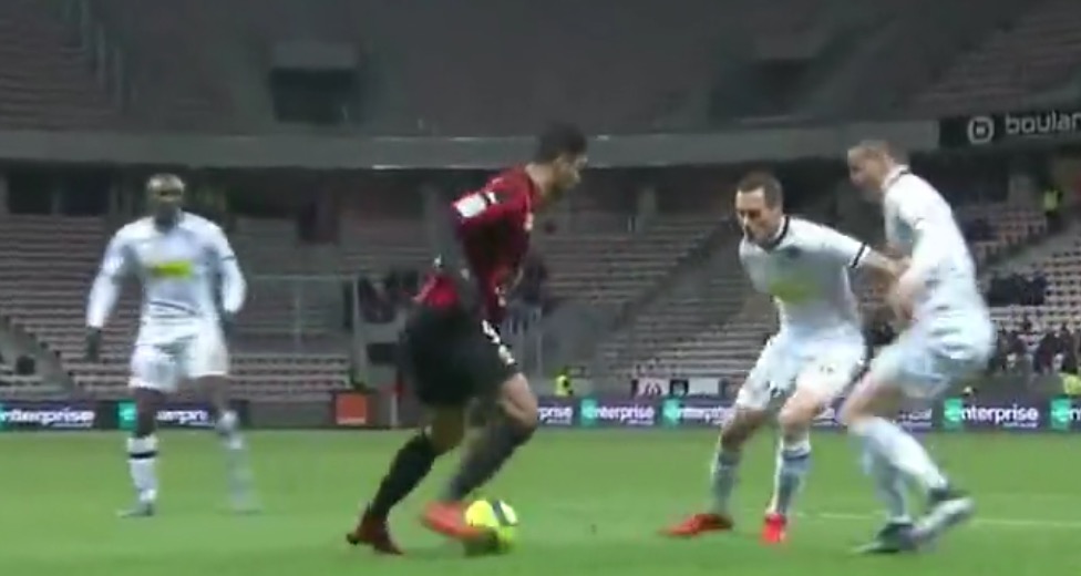 Le troisième but inscrit par Ben Harfa avec l'OGC Nice contre Rennes, le score actuel est de trois zéro. Allez Didier fais un geste...