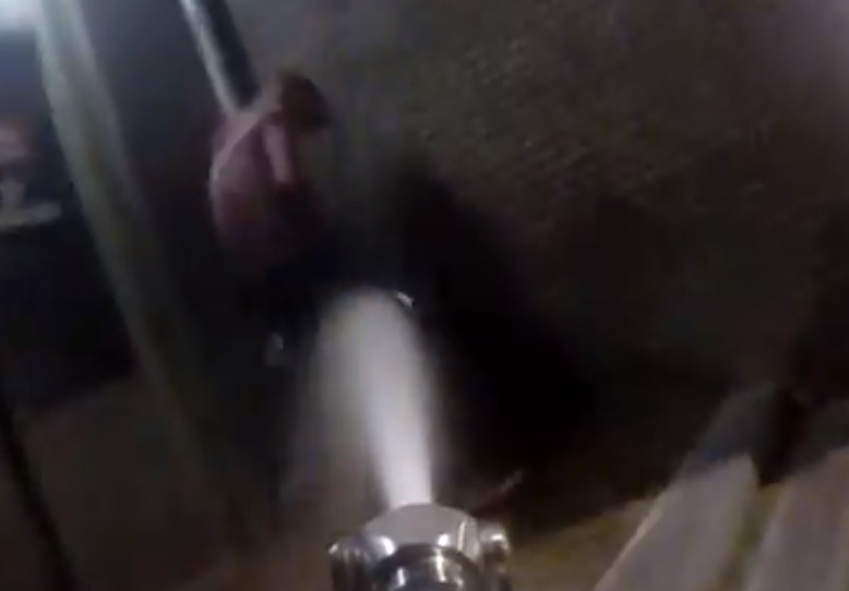 Il arrose avec un canon à eau les gens qui urinent dans la rue