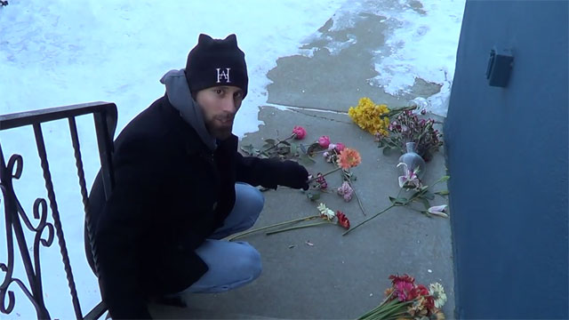 Description : Au Minnesota un américain nous montre à quel point il fait froid chez lui en cassant des fleurs gelées sur le sol.