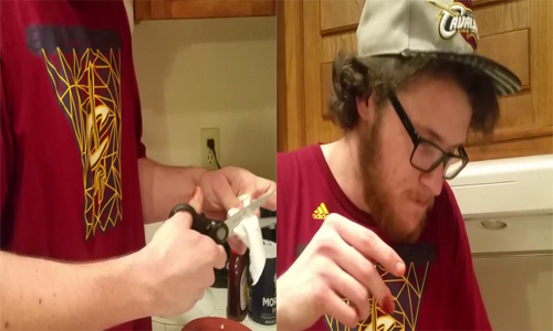 Description : Ce fan de basket avait dit à ses potes que si les Warriors de Golden State remportaient la série contre les Thunder d'Oklahoma City il mangerait leur t-shirt, depuis cette nuit c'est chose faite il a donc du être obligé d’honorer son pari et d'avaler un bon morceau de coton au ketchup.