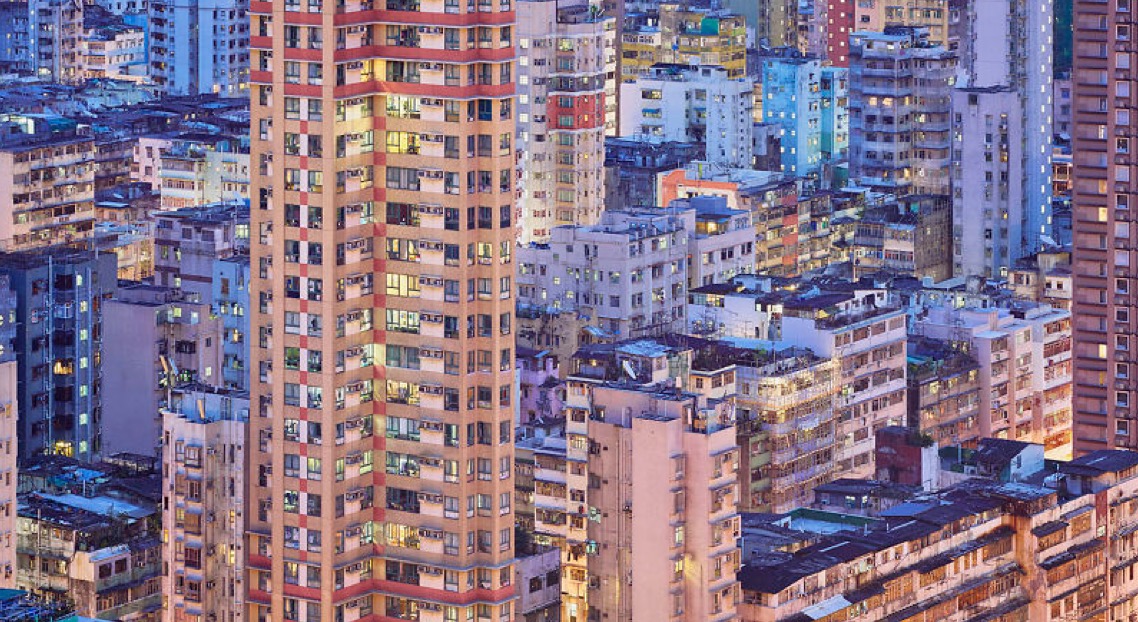 Il photographie les grattes ciel de Hong Kong au coucher du soleil