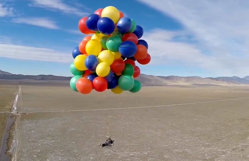 Description : La fameuse scène de la maison volante de Up (Pixar), refaite avec 40 énormes ballons et une chaise.