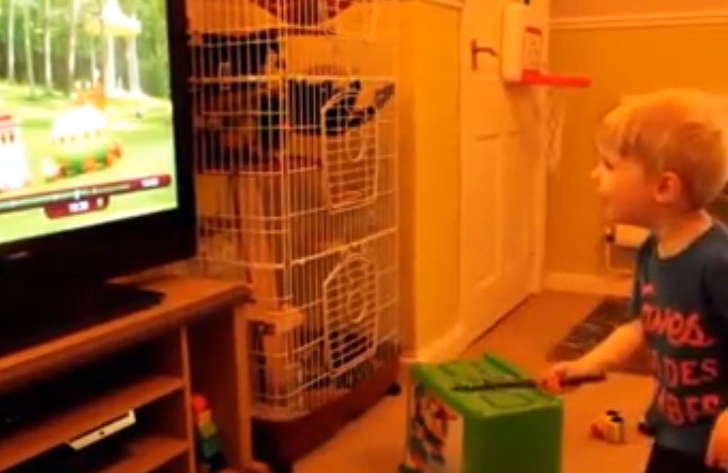 Description : Devant sa télé ce petit garçon va croire, grâce à ses parents, qu'il est équipé de supers pouvoirs et que sa baguette magique est réelle.