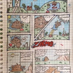 Histoire courte dessinée pendant les cours. Cette page n'est que l'introduction de l'histoire de Zarmo le super caca.