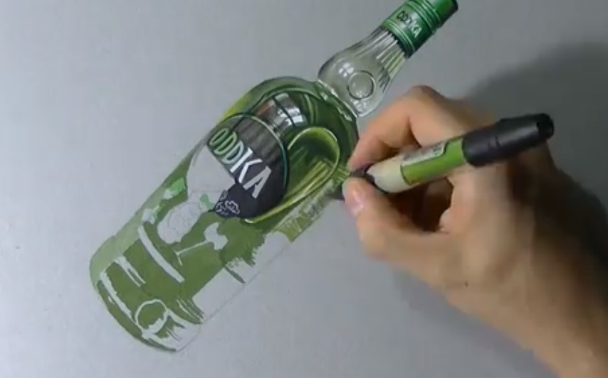 Impressionnant dessin réaliste d'une bouteille de vodka