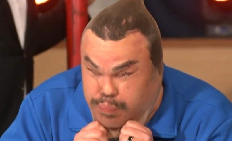 Un homme s'amuse avec son t-shirt tête de singe