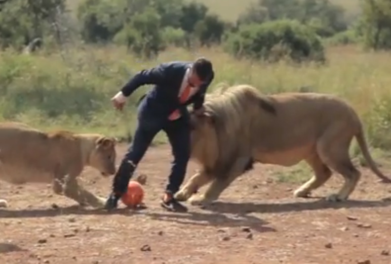 Description : Pour tester son passement de jambes, le zoologiste Kevin Richardson s'offre une partie de foot avec des lions.