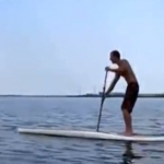 Description : Debout en train de pagayer sur un stand-up paddle, un type va se faire retourner par (d'après la source de la vidéo) plusieurs lamantins, une histoire qu'il va visiblement trouver très excitante...