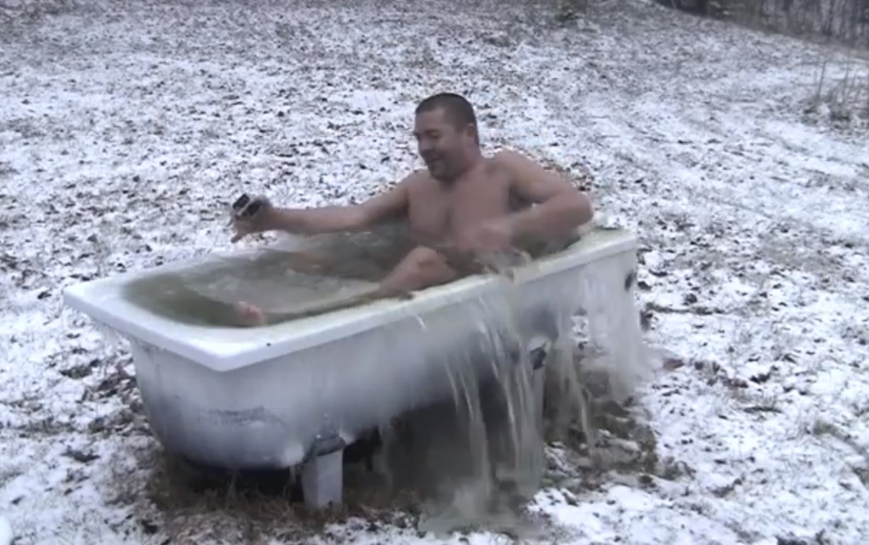 A Kodal en Norvège, un homme célèbre l'arrivée de la neige, à sa manière...