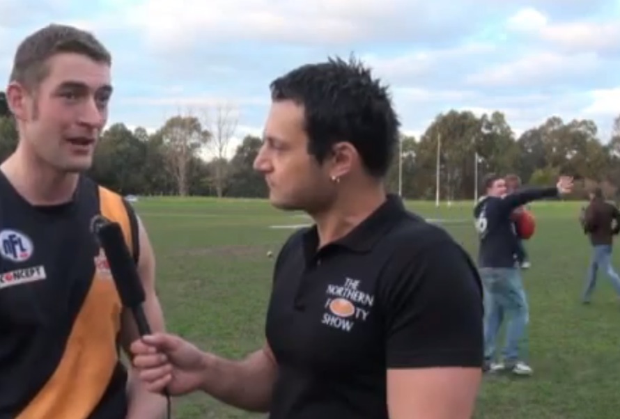 Description : Lors d'une interview sur un terrain de rugby un père de famille qui passe en fond va attraper un ballon à une main tout en aidant son fils à faire un joli backflip.