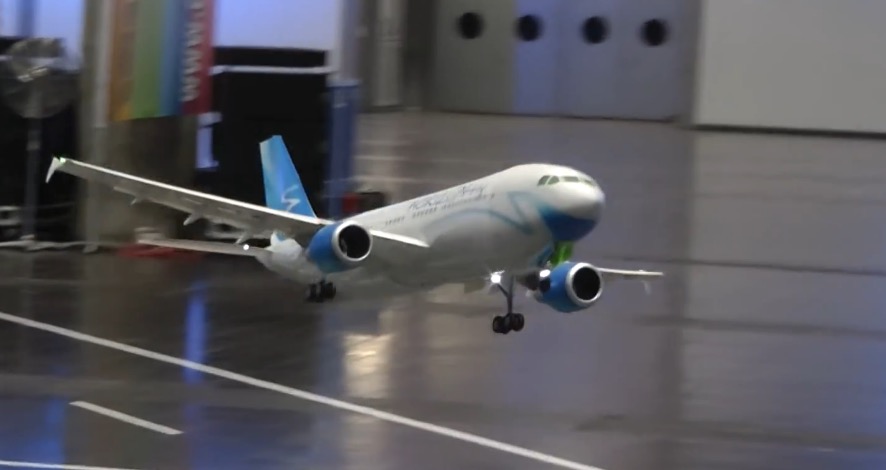 Description : En Allemagne pendant un salon de modèles réduits, un homme présente un vol hyper réaliste d'un Airbus A310 radiocommandé, le résultat est impressionnant.
