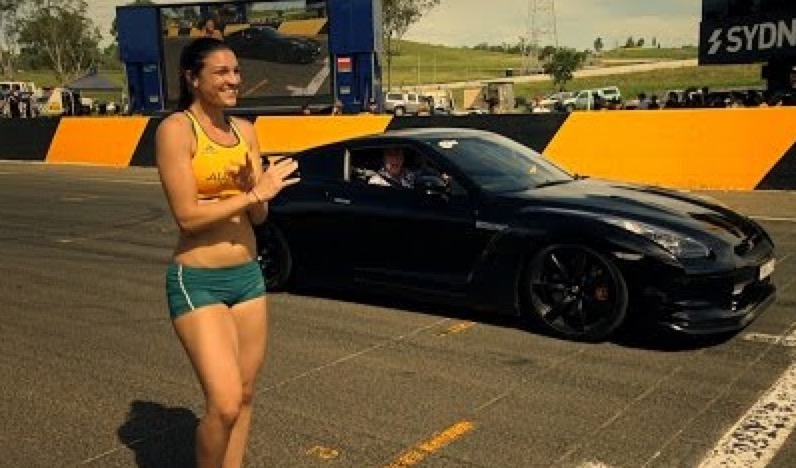 Michelle Jenneke fait la course avec une Nissan GTR