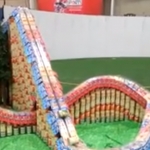 Description : Pour s'amuser un type a crée de véritables montagnes russes miniatures avec uniquement des canettes et des boites de céréales.