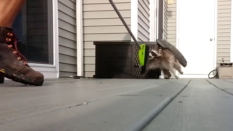 Description : En essayant de virer un raton laveur de sa terrasse cet homme va s'offrir une petite frayeur.