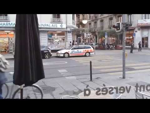 Description : A Genève, la police gare sur les passages piétons, et s'en vont acheter des hamburgers.
