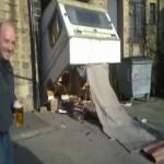 Régis fait sortir sa caravane du garage