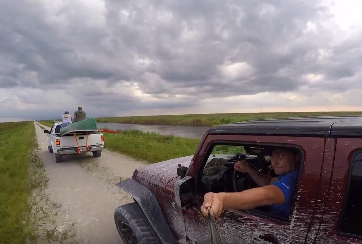 Description : Au volant de sa jeep, notre cher ami Régis se filme avec une GoPro et un stick à selfie, vous connaissez la suite.